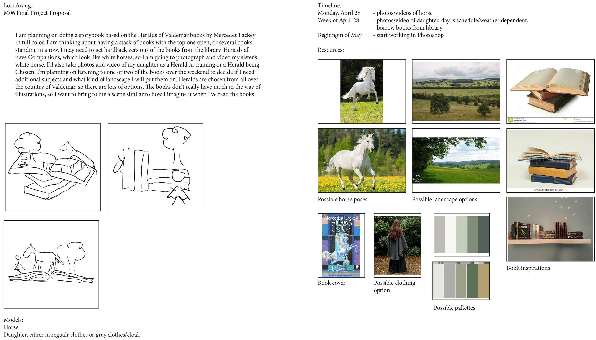 Tasked with creating a storybook scene in Photoshop. This composite was based on the book Arrows of the Queen by Mercedes Lackey.